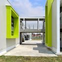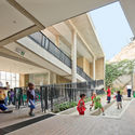 Las salas de enseñanza e interacción son volúmenes independientes integrados por la cubierta, que se separan entre sí para generar perspectivas desde el patio de juegos hacia la ciudad. Después de cruzar el patio de juegos, tras las salas de enseñanza, un balcón de cultivos sirve como mirador a la ciudad.