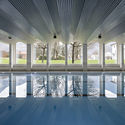 Descripción enviada por el equipo del proyecto. Originalmente construido en 1975, el Salón deportivo Balzers es una gran instalación deportiva multifuncional con tres gimnasios, salas auxilares de uso múltiple y una piscina cubierta abierta al público. La renovación del interior incluyó la renovación de los pisos antiguos, la actualización de los sistemas de protección contra incendios, así como el refuerzo de la estructura del edificio principal debido a la actividad sísmica local. Además de las renovaciones interiores, una nueva fachada de madera fue diseñada para encajar la envoltura existente del edificio - añadiendo aislamiento para resolver estándares actuales de Minergie.