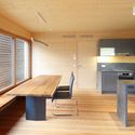Todos los elementos constructivos, puertas e interiores se construyen con ventanas de picea y los pisos se construyen con alerce. Las lamas protectoras del sol están hechas de madera de pino. ¡Todas las superficies de madera están completamente sin tratar!