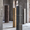 Descripción del artista. El proyecto consiste en la reutilización de puertas y postigos del edificio original, desechados en la restauración, para construir una serie de estructuras auto sustentadas. Las piezas están dispuestas por la sala, generando un ritmo en el espacio, así como dialogando con los cuatro pilares de hormigón que sostienen la nueva estructura.