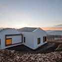 Descripción enviada por el equipo del proyecto. Casa V se construyó en una de las parcelas más altas de Üröm - Rókahegy, una zona montañosa al noreste de Budapest, a finales de 2015. Nos asignaron a diseñar una casa para una familia de dos generaciones, manteniendo el ojo en la mejor posible utilización de los indicadores de instalación de terrenos y la creación de un entorno construido exigente e innovador que represente adecuadamente las características del entorno suburbano actual.