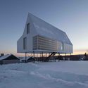 Descripción enviada por el equipo del proyecto. Para la "Casa alta", DELORDINAIRE juega con el límite entre interior y exterior, invitando a la gente a reunirse en espacios inmersos en la naturaleza. Las construcciones elevadas se utilizan típicamente en climas calientes y zonas de inundación. Este chalet de invierno energéticamente eficiente se utiliza la tipología de casa sobre pilotes para proteger parte del sitio al cual se le agrega una estufa al aire libre, proporcionando un espacio inusual donde los residentes pueden estar entre la naturaleza y el exterior cubierto de nieve, mientras disfrutan de cierta protección de los elementos.
