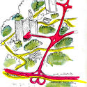 Le Corbusier, Manera de pensar el urbanismo, 1946, p. 74: «ruta de vehículos – ruta de peatones». Image © Le Corbusier en Bogotá y Fundación Le Corbusier (FLC)