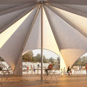 Maidan Tent cubre un área de 200 metros cuadrados con una estructura de aluminio cubierta por textiles resistentes al agua, viento, y al fuego, ofreciendo un ambiente protegido, seguro para un máximo de 100 personas. El refugio es inherentemente flexible, con componentes estandarizados que permiten una fácil instalación y mantenimiento y ocho espacios modulares que pueden adaptarse para una amplia gama de usos. La forma circular del esquema es un intento consciente de invitar a la gente a entrar desde cualquier dirección, donde una serie de espacios semi-privados pueden permitir a los refugiados establecer relaciones personales.