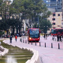 Descripción oficial: la peatonalización de la avenida, que era un antiguo río que fue canalizado y tapado, constituye un paseo que enlaza el centro de la ciudad con el camino al cerro tutelar de Monserrate, formando un eje de recuperación ambiental. Dice Salmona: “las curvas asfaltadas de la Avenida Jiménez de Quesada invocan en silencio el sepultado río San Francisco, o como lo llamaron los primeros habitantes de Bogotá (los muiscas), Viracachá, que quiere decir el resplandor del agua en la oscuridad”. Además de la recuperación de la memoria del agua y reintroducción de la palma de cera, el proyecto, que obligó a una reorganización del tráfico vehicular, se articula de manera sensible con las calles que desembocan en ella.