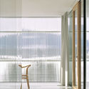 La antigua sala de producción fue renovada con un poco de trabajo y a reanudado su función. El recubrimiento de las construcciones preservadas tanto como la de los nuevos volúmenes, en sus cuatro niveles, es una cortina de láminas de plexiglas onduladas transparentes. Esta segunda piel proporciona un aislamiento adicional así como también protege el aislamiento inacabado de la fachada de paneles de madera cementados. A través de esta fachada externa la luz natural entra difusa en las habitaciones y es posible regular el grado de privacidad con estos elementos deslizantes.