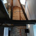 La estructura del medio, que originalmente era una residencia, ha sido completamente destruida y reemplazada con cocina en la planta baja y una nueva escalera vertical que distribuye la circulación a los diferentes niveles en las estructuras adyacentes.