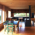 La estructura de muros, vigas y cubierta es de madera Coigüe. El revestimiento interior es de Lenga.