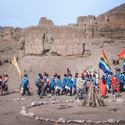 “Chukitanta Hayway. Chukitanta, Norte de Lima, 5 mil años de antigüedad. En la década de 1970 el sitio arqueológico fue abandonado rodeándose de basurales y delincuencia. A fines de los 90’s, la población local liderada por Sumaq Ayllu, un grupo indianista, protestaron por el proyecto Municipal de instalar prostíbulos. Propiciaron programa educativo entre la juventud. En 2001 se estableció calendario andino de celebraciones periódicas. La foto corresponde al Inti Raymi, inicio del año andino, solsticio de invierno. Contención Social, Población local-Estado se apropian del espacio arqueológico para su conservación y puesta en valor”.