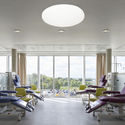 Descripción enviada por el equipo del proyecto. En nombre del Hospital Chesterfield Royal y con el apoyo y patrocinador de la NGS (National Garden Scheme), los arquitectos de The Manser Practice han completado una unidad de cáncer de 2.140 metros cuadrados construida específicamente en la parte posterior del campus del hospital existente. El nuevo edificio está vinculado al hospital principal a través de un puente acristalado.