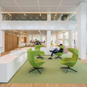 Los pisos de oficinas se reorganizaron y se equiparon con una amplia variedad de lugares de trabajo, desde abiertos y basados ​​en actividades hasta salas de concentración y oficinas celulares más tradicionales. El diseño renovado se realizó en estrecha consulta con los diferentes inquilinos y se ajustó a sus necesidades y deseos. La nueva disposición hace un uso óptimo de la estructura básica existente, clara y racional del edificio. La atmósfera fresca, luminosa y aireada tiene líneas de visión largas, estimula la interacción visual y de usuario entre los diferentes inquilinos y agrega una buena orientación. También se prestó mucha atención a la funcionalidad y el ambiente de las instalaciones compartidas, como las zonas de descanso y las salas de reuniones de diferentes tipos y medidas.