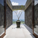 Descripción enviada por el equipo del proyecto. Las fachadas frontal y posterior de la primera planta son sólidas, proporcionando un espacio exterior cubierto mientras mantienen la pureza geométrica del volumen. Se crea una transición público-privada en la entrada de la villa, y continúa hacia abajo en el nivel de la planta baja. Visto desde el exterior, la composición sólida-vacía puede leerse claramente. Una fachada larga y transparente encierra el espacio abierto, el "vacío", y dos bloques de piedra cerrados en ambos extremos marcan los espacios privados "sólidos".