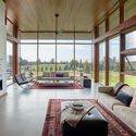 La vivienda incluye un dormitorio principal con un baño integrado en el nivel principal, así como dos dormitorios en el nivel inferior. La casa es espaciosa, pero proporcional, siempre se centra en la vista a su entorno. Los acabados de materiales incluyen, entre otros, granito local, cedro canadiense, concreto pulido, vidrio y caoba. La calefacción radiante en el piso es proporcionada por un bucle geotérmico con zanjas, que proporciona una temperatura cómoda durante todo el año y el beneficio adicional de las características de sostenibilidad.