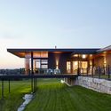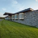 Descripción enviada por el equipo del proyecto. Descansando en un campo ondulado, esta moderna casa de campo rural fuera de Toronto se inspiró en las paredes de piedra que se utilizaban para separar los campos de los agricultores.