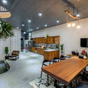 La casa es introvertida pero aún así proporciona ventilación y luz natural completa para el espacio. Una gran mesa de comedor alcanza para recibir más invitados, mientras los estanques y árboles Koi se entretejen en el espacio interior.