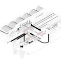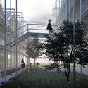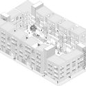 E3: UNIDAD INVESTIGACIÓN / DESARROLLO / INNOVACIÓN. En esta unidad se insertan los programas que permitirán la conexión entre la educación y las demandas de empresas privadas del sector de la industria 4.0. Está subdivida en tres grandes programas vinculados por un hall principal, siendo esta, la única intervención arquitectónica: