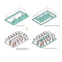 Consideramos tres estratos principales del proyecto, entendiendo a la interacción entre los mismos como UMBRALES, lugares de oportunidad, donde dos situaciones distintas entran en contacto, propiciando que se generen las relaciones más interesantes. Definimos al espacio público como el lugar accesible a la sociedad en su totalidad capaz de albergar a gente de distintos grupos sociales y etarios. El espacio comunitario, como el lugar de uso común entre los vecinos del conjunto de viviendas, solo accesible para quienes residen allí. Por último, al espacio íntimo, las viviendas, donde cada familia desarrolla su propia vida en intimidad.