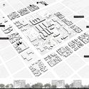 E1: MASTER PLAN. Esta área debe ser conservada como espacio público, realizar una ocupación mínima con nuevos programas y tomar al peatón como eje central. La combinación de funciones y demandas requeridas por los ciudadanos de este y otros sectores, sumado a la nueva densidad propuesta pueden lograr la conformación de un nuevo centro administrativo, cívico, deportivo, comercial y cultural que disminuyan la demanda del centro actual.