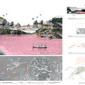 A partir de este estudio se propone transformar el río Rímac mediante estructuras de regeneración urbano-ambiental. Se plantean puentes en el fondo de río que cumplen la función de filtros mediante un sistema que permite el desplazamiento vertical de recolectores de residuos sólidos. Seguidamente se plantea puentes de contención transversal entre ambos márgenes que previenen la erosión y desplome, además de muros de contención longitudinales que permiten un corredor público con espacios de estar. En el encuentro de la superficie con el río se plantean puentes-plaza que permiten el cruce de suturas, acompañadas de equipamientos sociales y productivos.