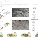 Al comparar las fotos de 1993 y 2013, se evidencia que las plataformas fueron rellenadas. Partiendo del estado anterior del terreno, juego con la excavación y como no es arqueológico intervengo sobre él. El proyecto plantea jugar con lo existente y precedente bajo la misma lógica de modelar el suelo y revelar lo excavado. La excavación como una oportunidad de diseño, donde el suelo es el que cualifica el espacio y busca relacionarse con el lugar bajo la misma estrategia de implantación: modelar el suelo.