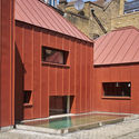 Descripción enviada por el equipo del proyecto. Ubicado en un barrio victoriano, este terreno trasero se encuentra oculto por todos su lados de la vía pública. Nuestra solución fue desarrollar un pequeño patio interior, ofreciendo privacidad tanto visual como acústica. El diseño es una composición de pabellones. Esta ruptura en los elementos nos permitió responder a un sitio de límites irregulares y a crear un conjunto que mira a una piscina dentro de un patio tranquilo.
