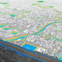 Una vez más, los arquitectos recurrieron al entorno natural para su solución. A través de conversaciones con residentes y expertos, y analizando el paisaje actual e histórico de la región, Hartenberg y Pfannes se enteraron de una estrategia de gestión del agua implementada por los mongoles en los siglos XVII y XVIII, quienes cavaron miles de zanjas que permiten que el agua de lluvia lentamente impregne la tierra y restaure los acuíferos de la ciudad. A partir de ahí, el agua purificada puede ser bombeada con pozos. "Con la urbanización, este sistema fue olvidado", dice Pfannes. “Construyeron sobre los lagos y desviaron el agua donde básicamente se pierde para siempre; de nuevo, nos hemos alejado de los sistemas que la naturaleza nos ha proporcionado ".
