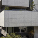 La paleta de materiales que conforma la estética del edificio responde al alto contraste entre texturas. La superficie rugosa de los azulejos de granito enfatiza la superficie lisa y fina de concreto en el exterior del edificio. El material principal del interior es la madera de teca, la calidez de este material natural redujo la sensación de aislamiento que causan los patios interiores de concreto y producirá una textura única después de usarlo.